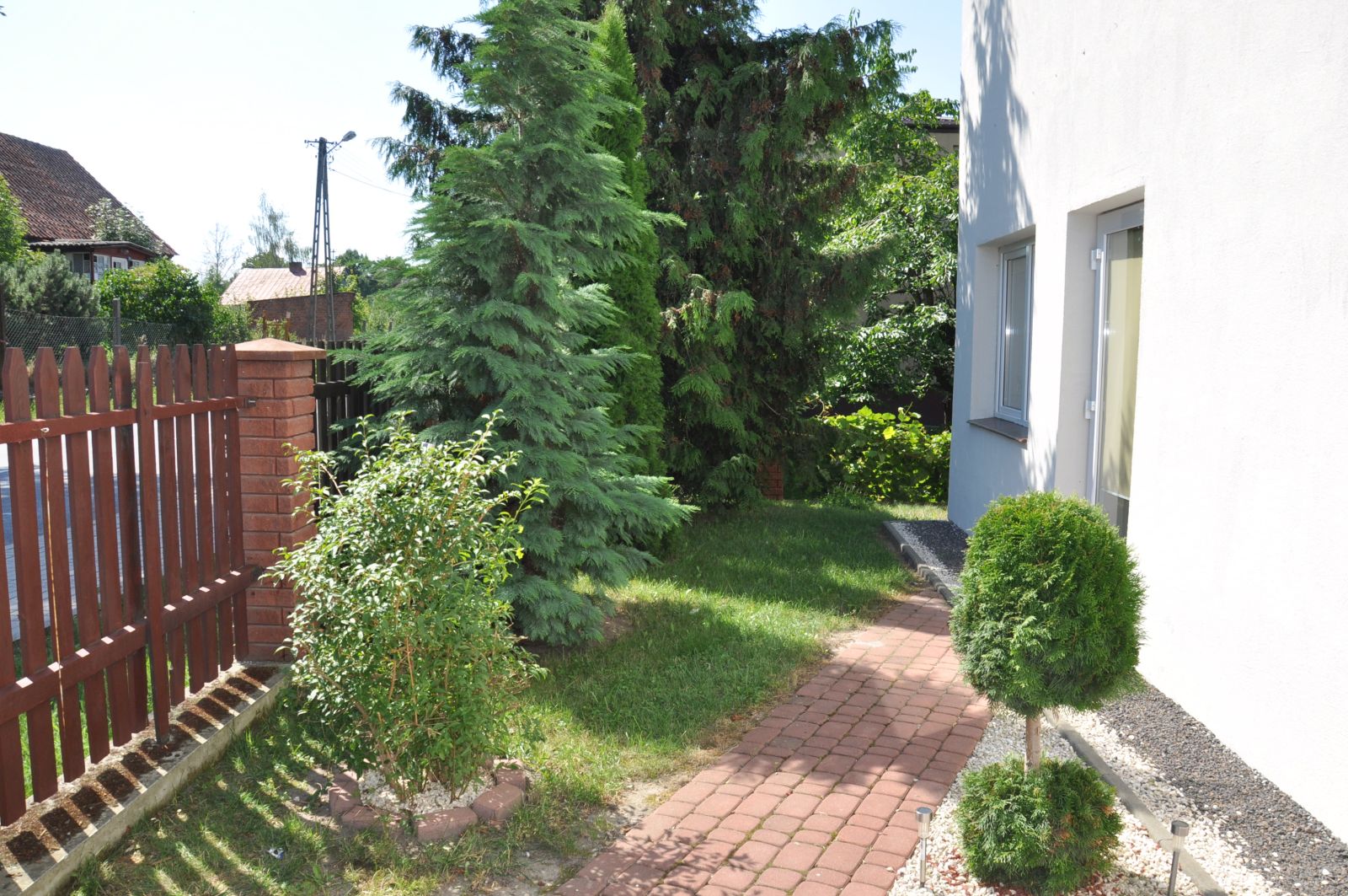 Nieruchomość jest gotowa do wprowadzenia się, usytuowana w spokojnej okolicy. Na działce mieści się garaż, z tarasu rozpościera się przyjemny widok na zieleń i pobliskie gospodarstwa. Ogrodzenie jest drewniane, dodatkowo wzbogacone żywopłotem. Ze względu na dostępną przestrzeń dom stanowi optymalne lokum mieszkalne zarówno dla jednej, jak i dla dwóch rodzin.